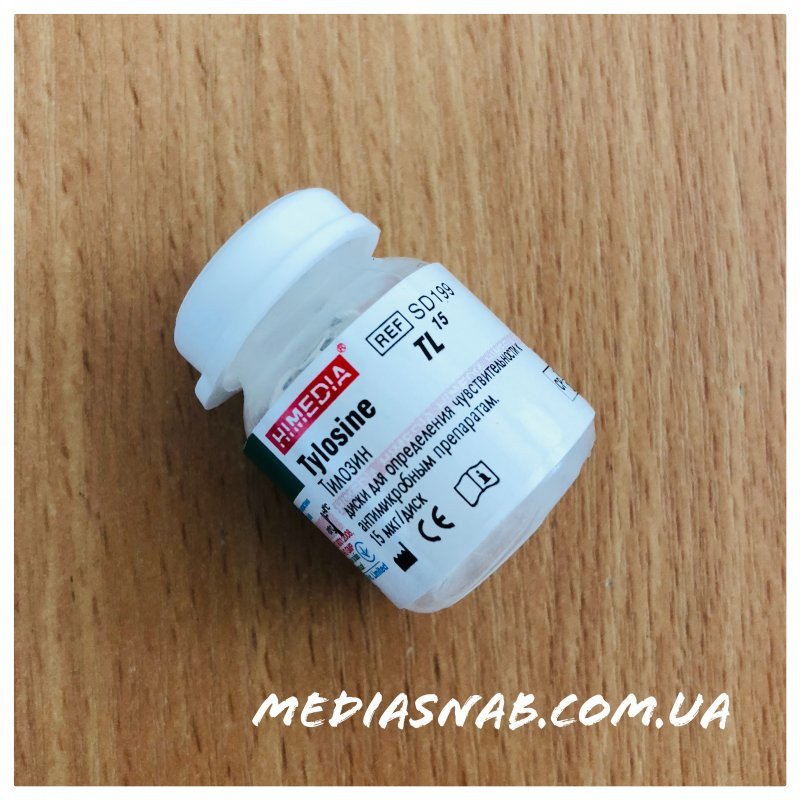 Диски з антибіотиками для визначення чутливості мікроорганізмів до антимікробних препаратів. Диски SD199 Tylosine / Тілозін 15 мкг. 100 дисків у флаконі.