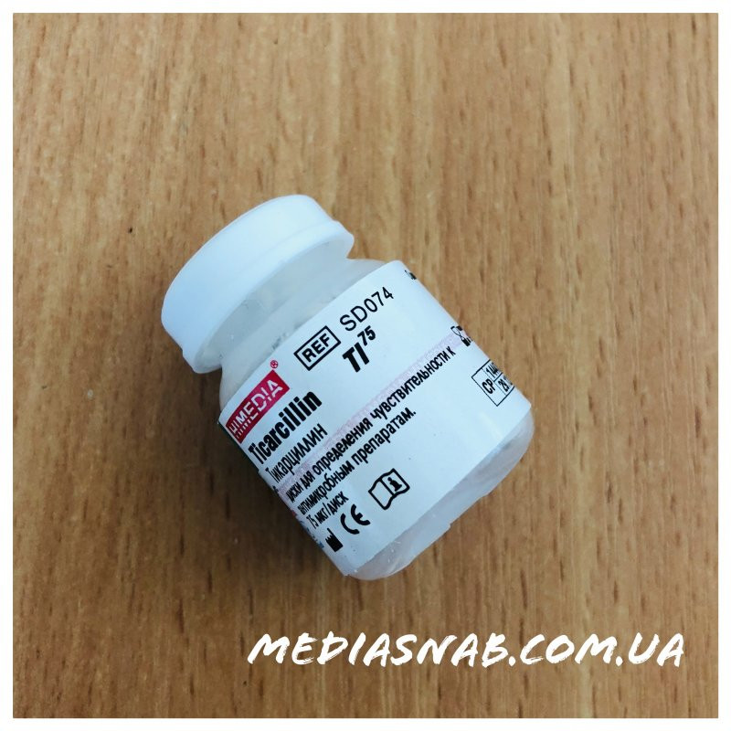 Диски з антибіотиками для визначення чутливості мікроорганізмів до антимікробних препаратів. Диски SD074 Ticarcillin / Тикарцилін 75 мкг.