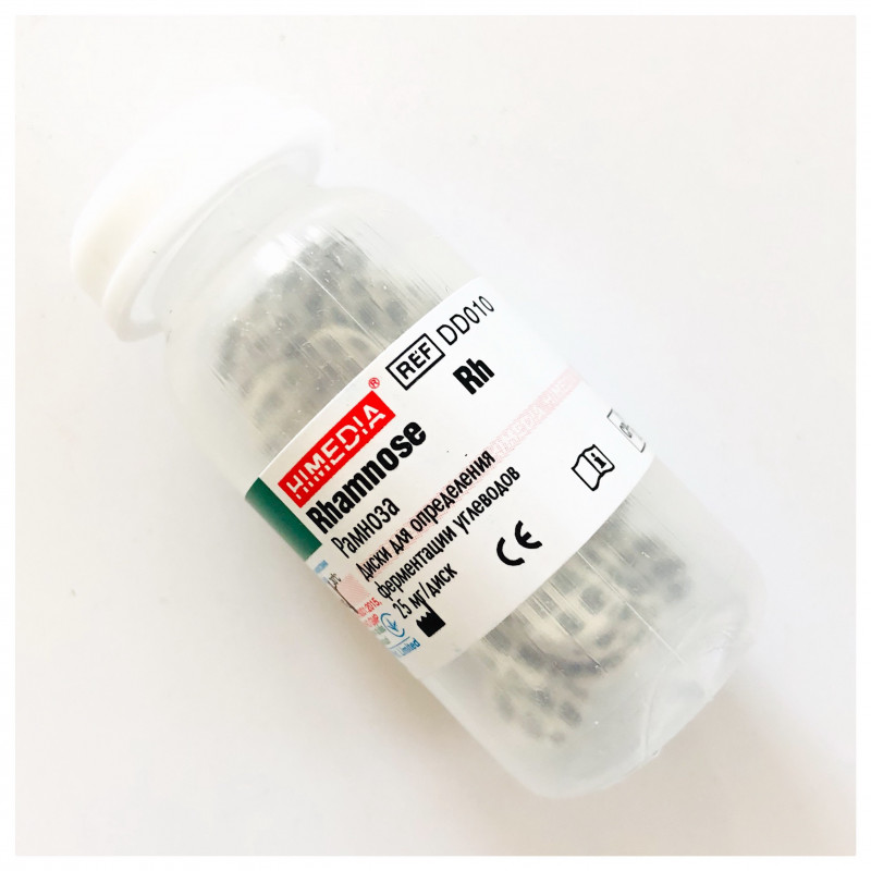 Диски діаметром 10 мм із фільтрувального паперу, з написом «Rh». Rhamnose Rh/Диски з рамнозою. 25 штук/флакон. Для диференціації мікроорганізмів за здатністю ферментувати вуглеводи.