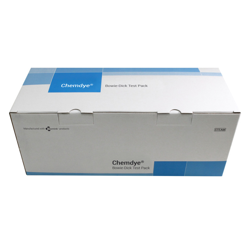Хімічний індикатор тест-пакет Bowie & Dick призначений для перевірки ефективності видалення повітря в вакуумних парових стерилізаторах. Цикли по 10 хвилин при 121 ºC.