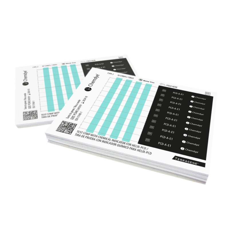 Хімічні індикатори, призначені для використання в системі Helix-PCD для контролю процесів стерилізації оксидом етилену (ЕО). Умови: 240 хв., 54 ºC, ЕО 600 мг/л, 60 % відносної вологості.